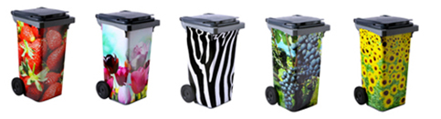 Ces stickers ont été fabriqués pour résister aux intempéries, (sérigraphie, vernis anti-UV) et recouvriront trois faces de votre bac, la face avant et les deux côtés, la face arrière devant rester vierge afin de laisser la lisibilité d'une éventuelle étiquette d'appartenance. |