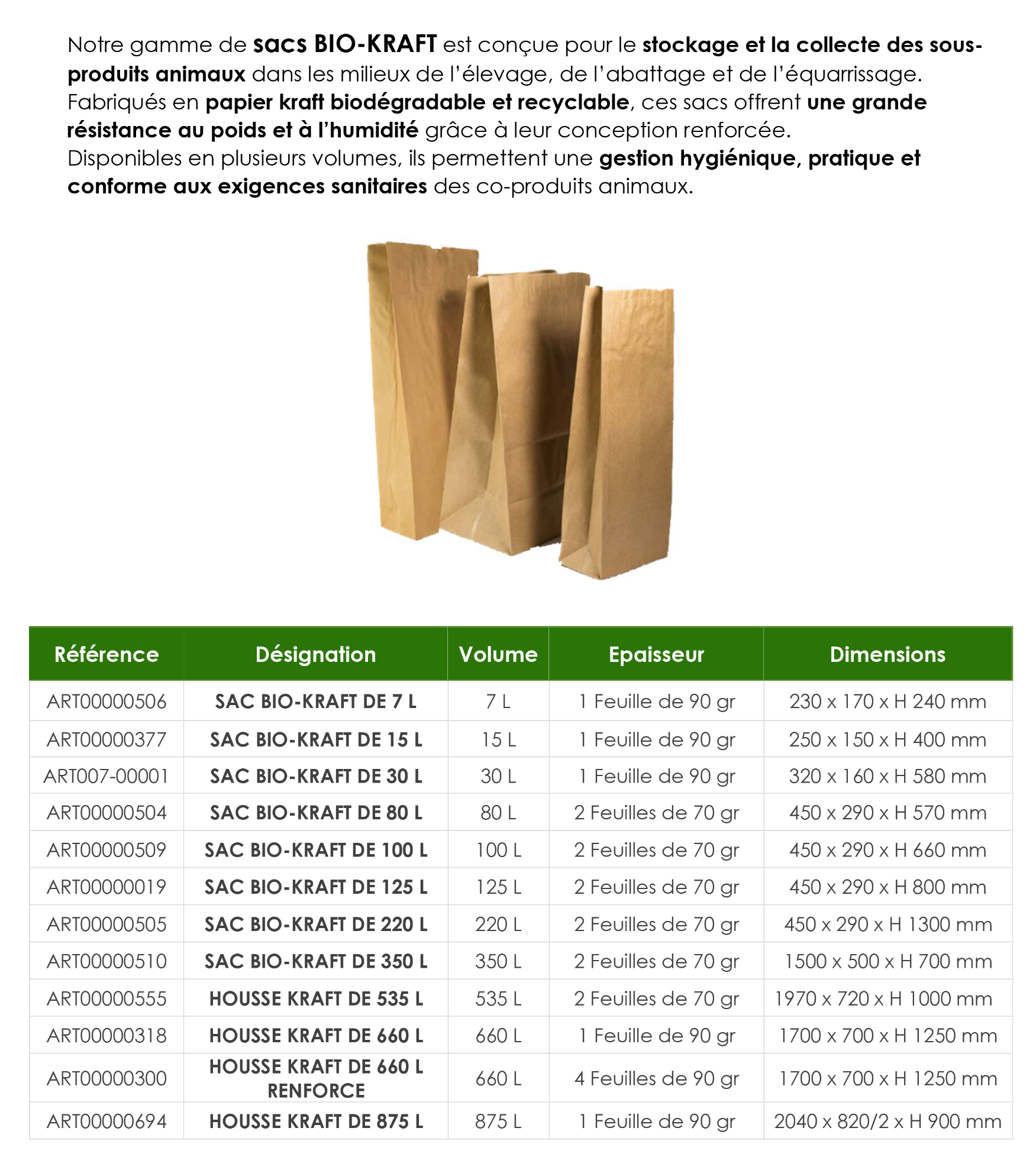 GAMME DES SACS & HOUSSES BIO-KRAFT